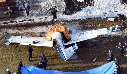 Hiện trường vụ máy bay rơi. Ảnh: Kyodo