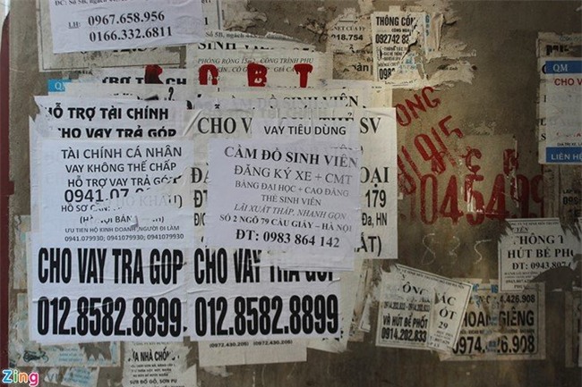 Tin nhắn SMS, tờ rơi, quảng cáo cho vay tiền mặt với lãi suất thấp, không cần thế chấp, nở rộ khắp nơi tại Hà Nội. |