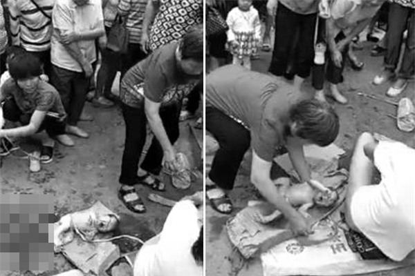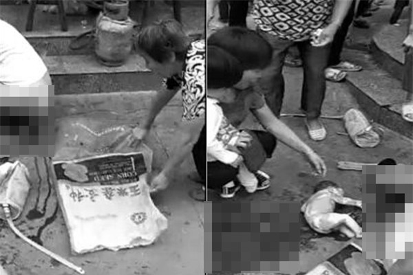 Cuối cùng, một người phụ nữ tên Huang Jiulian tiến đến chăm sóc đứa trẻ. Ban đầu, bà đặt bé lên bìa cứng nhưng lại lập tức đổi thành chiếc quần của người mẹ cho mềm hơn.