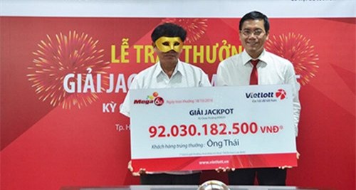 | Ông Thái nhận giải Jackpot 92 tỷ đồng trao ngày 18/101/2016 |