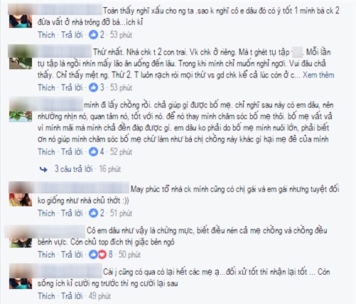Đến đôi dép còn xô, đôi đũa còn lệch, huống chi là người với người. Ngay sau khi T.N đem chuyện của mình chia sẻ trên một diễn đàn lớn, cả nghìn thành viên mạng đã nhảy vào “mổ xẻ” không thương tiếc. Có thể vì câu chuyện khá gần gũi với cuộc sống thường nhật, nhiều chị em cũng từng phải đối mặt, nên thu hút sự quan tâm chú ý của khá đông các mẹ bỉm sữa. Đa phần đều cho rằng giọng điệu người chị chồng khá gay gắt, đọc qua thấy sự việc cũng chẳng có gì to tát, chỉ là sinh hoạt thường ngày mà thôi.