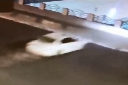 Theo đoạn video clip, phần đầu chiếc xe hơi màu trắng là phần chạm đất đầu tiên nên đã bị nát bấy hoàn toàn khiến các mảnh vỡ văng tung tóe trên đường. Rất may là tại thời điểm xảy ra tai nạn đang là buổi đêm về sáng nên đường khá vắng vẻ do đó không có thêm ai bị thương nữa.