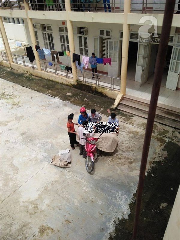 Do kinh tế khó khăn, chị P được gia đình vận chuyển bằng phương tiện xe máy. Sau đó 30 phút thì bệnh nhân tử vong và được bó buộc bởi chiếc chiếu để tiếp tục cuộc hành trình về quê mai táng.