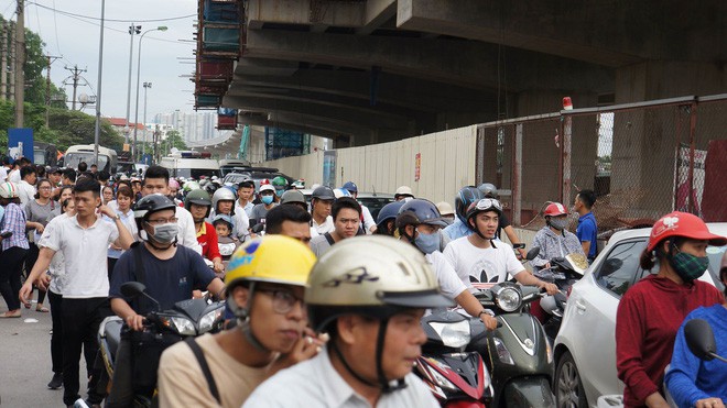Do tại điểm thi trường Đại học Công nghiệp có rất đông thí sinh thi tự do và thi lại Đại học nên lượng thí sinh tập trung tại đây rất đông, khi kết thúc bài thi môn toán giao thông tại đây ùn tắc nghiêm trọng.