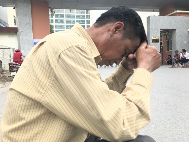 Ông Nguyễn Xuân Sơn (trú tại xã Ngọc Tảo, huyện Phúc Thọ, Hà Nội) trong lúc ngồi đợi con trai làm bài thi đã tranh thủ chợp mắt do không được nghỉ trưa.