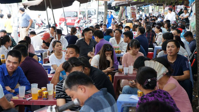 Các quán nước hai bên cổng trường Đại học Công nghiệp chật kín người.