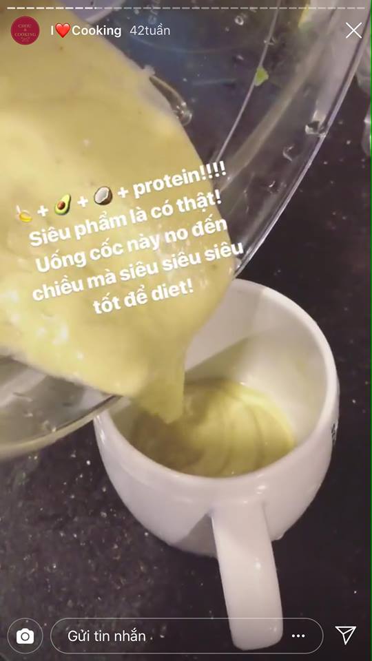 Thức uống hỗn hợp đủ chất gồm bơ, chuối, nước cốt dừa... là "thần dược" giúp cô nàng hoạt động cả ngày mà không có cảm giác đói.