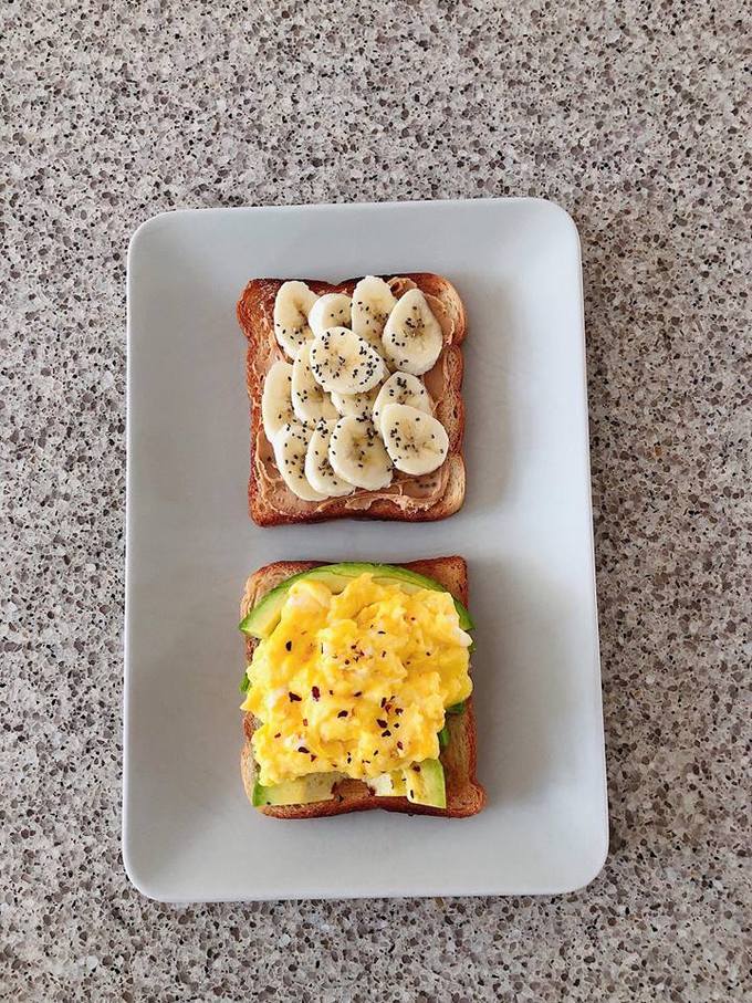 Để cho bữa ăn không nhàm chán, nữ diễn viên đổi trứng thành chuối và rắc hạt chia.