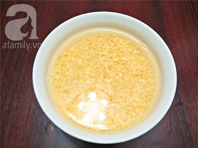 Đậu xanh vo sạch sẽ, ngâm nước 2 tiếng cho đậu nở mềm.