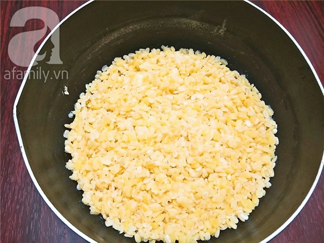 Cho đậu, nước vào nồi, bật bếp nấu cho tới khi đậu chín và nước trong nồi cũng rút cạn là tắt bếp.