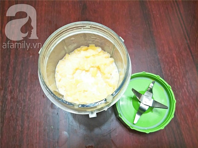 Cho đậu vào máy xay cùng với nước cốt dừa, xíu muối rồi xay cho đậu nhuyễn mịn.