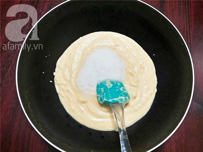 Cho đậu ra chảo, thêm đường, dầu ăn và bật bếp lửa nhỏ, đảo liên tục và xào cho tới khi đậu khô ráo là được.