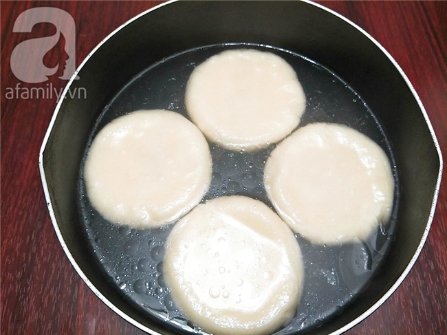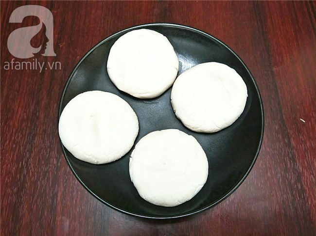 Lấy khối bột ra và chia thành 8 phần đều nhau, với nguyên liệu trên sẽ làm được 4 cặp bánh. Vo tròn từng viên bột lại sau đó ấn dẹt sao cho bánh được tròn nhé.