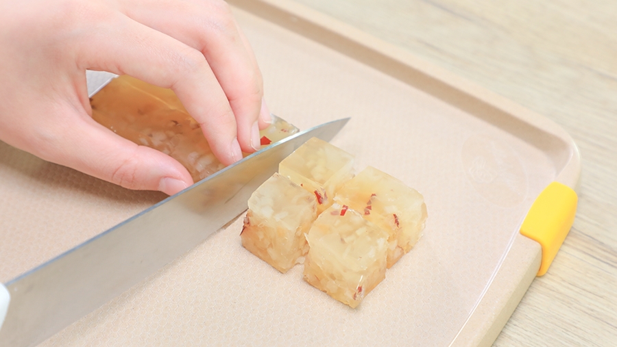 Bước 8: Sau khi bánh đông đặc thì lấy bánh ra khỏi khuôn rồi cắt thành miếng vừa ăn là xong.