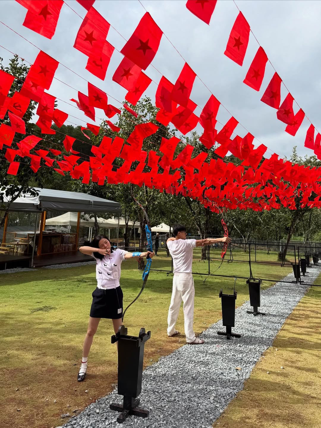 Theo đó, nam người mẫu khoe khoảnh khắc bên Lệ Quyên cùng tham gia bộ môn bắn cung. Anh hào hứng viết: