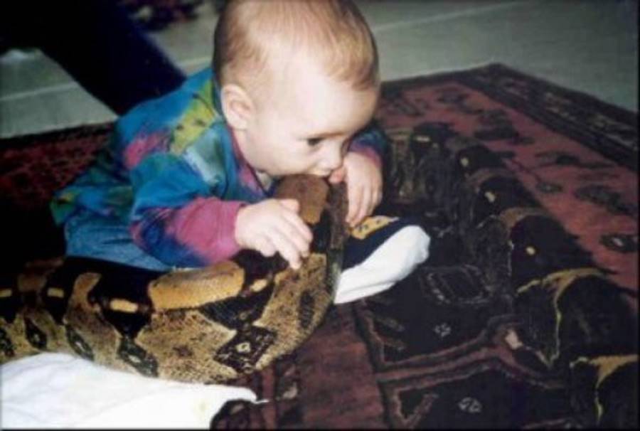 Đừng bao giờ để trẻ ra khỏi tầm mắt của bạn! Một em bé đã liếm da của một con trăn trong phòng khách khi chỉ có một mình và điều này thực sự nguy hiểm khi trẻ có thể bị trăn siết cổ.