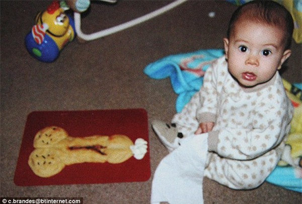Em bé này chắc cũng ngạc nhiên lắm khi mình có được chiếc bánh với hình dạng "khó đỡ".