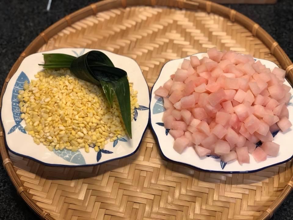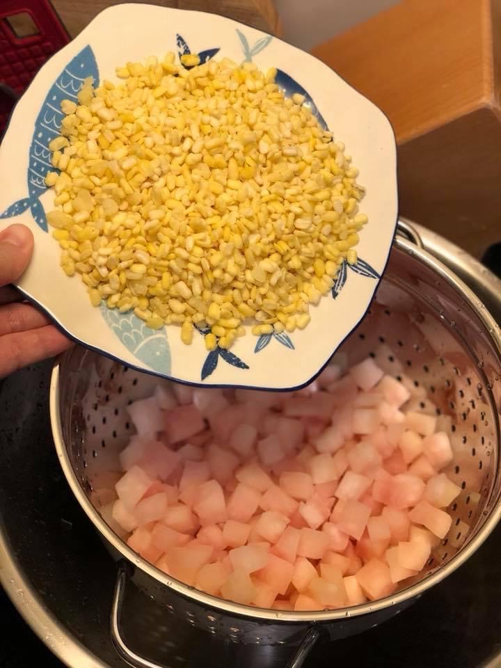 - Đậu xanh 100gram tách đôi bỏ vỏ.