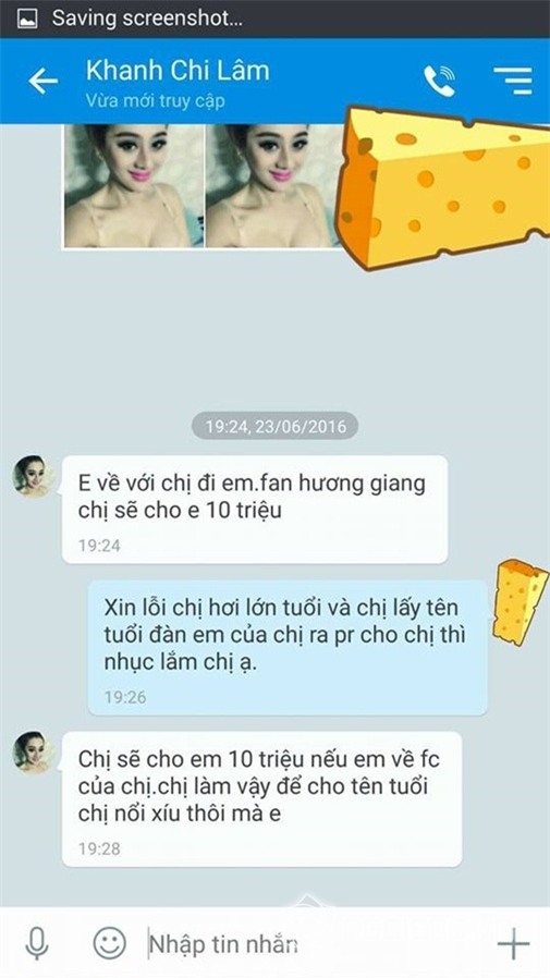 Chào Lâm Chi Khanh, mới đây, công chúng lại xôn xao vì loạt tin nhắn được cho là của chị nhằm dụ dỗ fan Hương Giang Idol về với fan club của mình với giá 10 triệu. Chị nói gì về điều này?