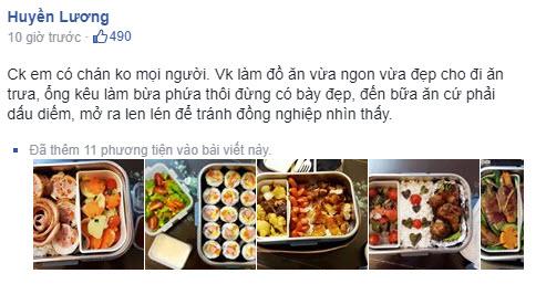 “Chồng em có chán không mọi người. Vợ làm đồ ăn vừa ngon vừa đẹp cho đi ăn trưa, ổng kêu làm bừa phứa thôi đừng có bày đẹp, đến bữa ăn cứ phải dấu diếm, mở ra len lén để tránh đồng nghiệp nhìn thấy.”…