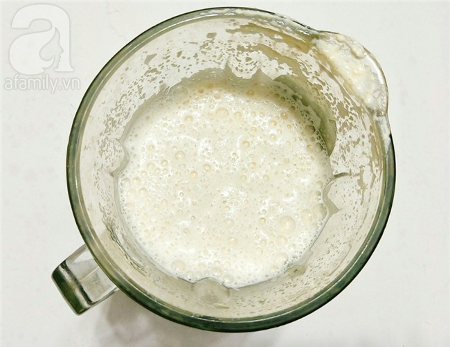 Cho 1/2 số lượng đậu vào cối máy xay sinh tố, thêm 400ml nước và đậy nắp xay cho tới khi hỗn hợp nhuyễn mịn.