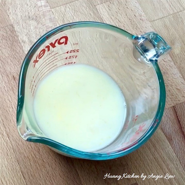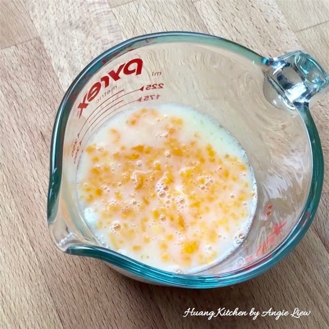 Cho nguyên liệu phần nước sốt trứng muối gồm 1 quả trứng, bột ngô, nước, muối, hạt tiêu, dầu mè vào trộn đều.