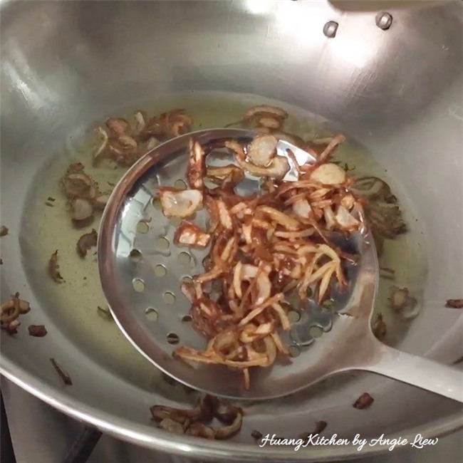 Trong lúc hấp đậu phụ cho hành khô vào chảo dầu chiên vàng thì vớt ra đĩa có lót sẵn giấy thấm dầu.