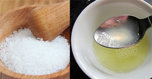 - Cho 1 nhúm muối nhỏ vào hòa tan với nước cốt chanh.
