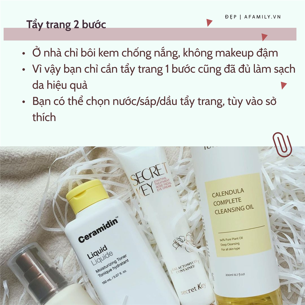 Khi không trang điểm quá đậm, dùng son hoặc kẻ mắt lâu trôi thì bạn chỉ cần tẩy trang một bước đã đủ làm sạch da.