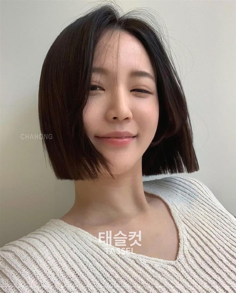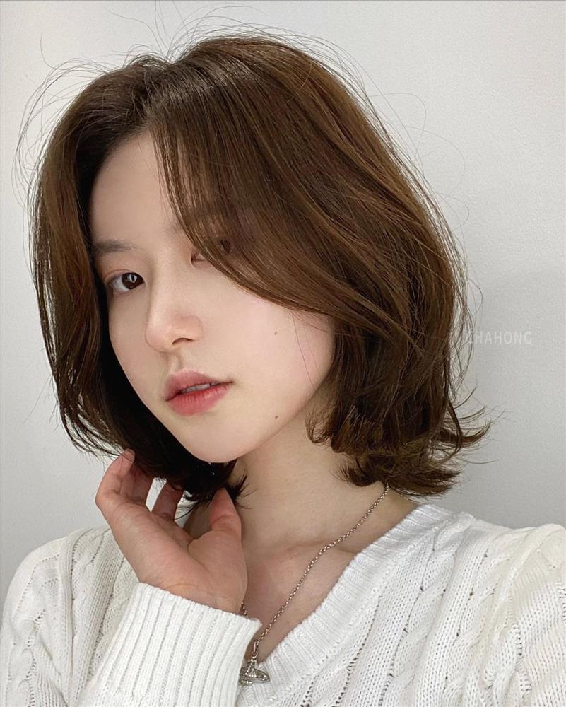 Tóc bob đuôi bằng không kén mặt như nhiều chị em tưởng. Mặc dù đặc trưng của kiểu tóc này là phần mái dài, rẽ ngôi giữa chỉn chu, nhưng các nàng vẫn có cách tạo kiểu, để thu gọn gương mặt. Cụ thể, hãy tạo phồng phần chân tóc, hoặc thả nhẹ vài lọn tóc mai. Đơn giản vậy thôi, mái tóc của bạn vừa có độ dày, lại vừa giúp gương mặt thêm phần thanh tú.
