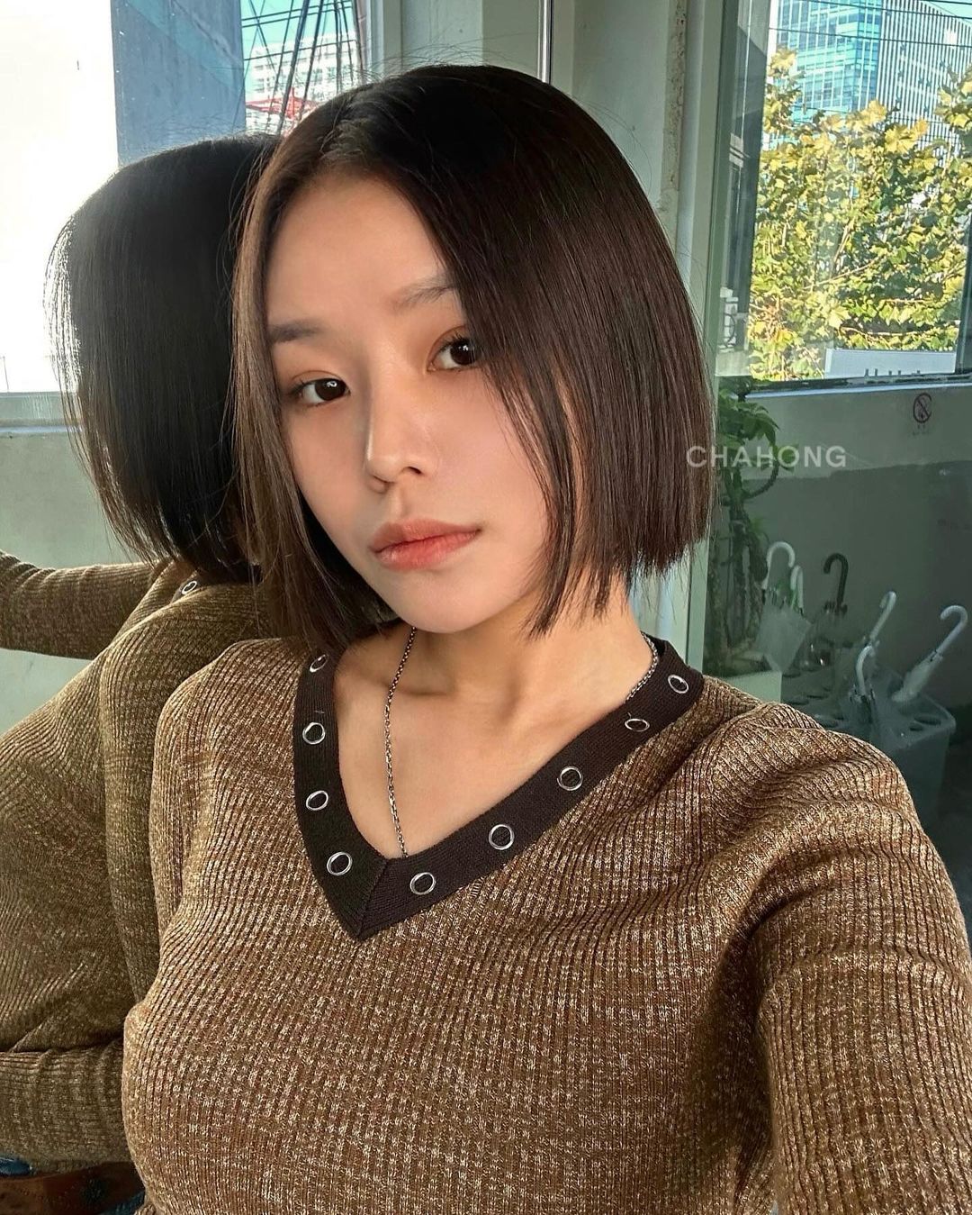 Nếu lo ngại rằng tóc bob rẽ ngôi giữa, mái dài có thể để lộ nhược điểm, chị em hãy chọn những phiên bản dễ áp dụng hơn. Cụ thể, tóc bob mái thưa hay mái bay sẽ tạo vẻ cân đối cho gương mặt, giúp các đường nét thêm nhỏ gọn, thanh thoát.
