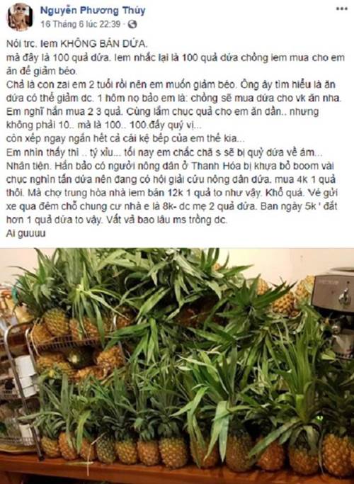 Dòng status dễ thương của chị vợ "khoe" chồng soái ca cùng 100 trái dứa xanh tươi như vườn nhà.