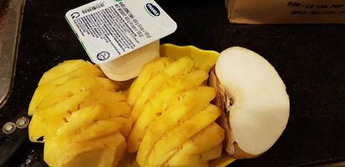 Hai mẹ con cùng thưởng thức những món ngon, bổ dưỡng từ quả dứa bố mang về.
