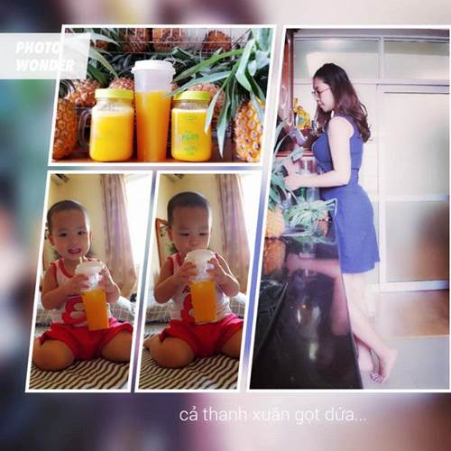 Bà mẹ trẻ chuẩn bị đầy đủ dụng cụ máy xay chế biến ra đủ món khác nhau từ nước ép, sinh tố dứa cho đến cơm rang quả dứa.