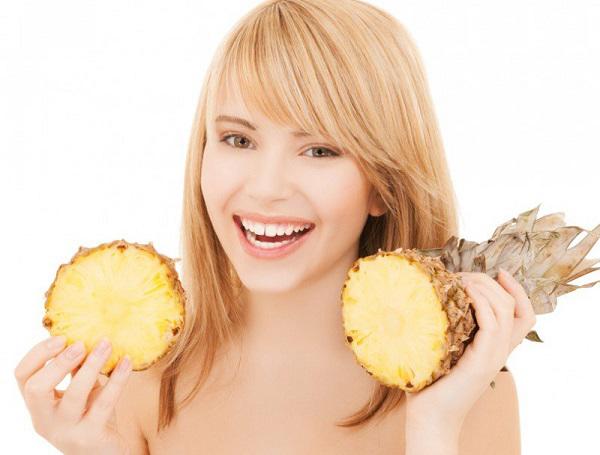 Trong dứa có chứa enzym Papain kích thích việc thay thế các tế bào da cũ, làm mờ các sắc tố nâu, đen.
