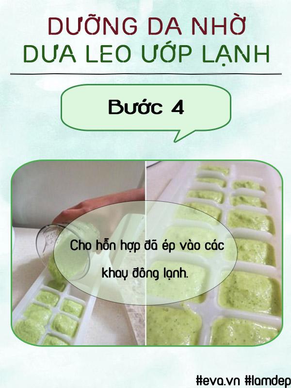 Sau đó, cho ngay nước ép vào các khay đá nhỏ. Và mỗi lần chăm sóc da, các bạn chỉ cần dùng đến 1 viên như thế này thôi.
