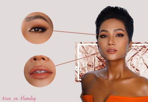 Vẫn làn da nâu và cặp chân mày ấy, lần này H'Hen gây ấn tượng bởi đôi môi nhẹ nhàng, quyến rũ hơn với cách đánh son xí muội bằng màu cam đất, thêm chút bóng nơi đỉnh môi.