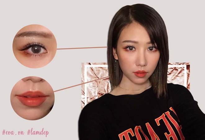 Lối trang điểm Hàn Quốc với lông mày ngang, mắt to tròn, đuôi eyeliner kéo dài, phấn nâu nửa cuối mi dưới vẫn được Min tận dụng triệt để như phong cách mà cô nàng đang theo đuổi.