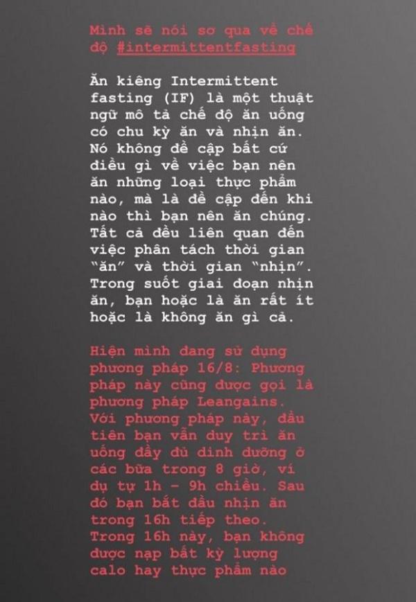 Phương pháp Intermittent Fasting được Yến Trang vừa mới chia sẻ trên instagram.