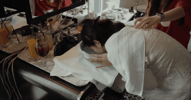 Cô sẽ chuẩn bị một bát nước đá lạnh, sau đó nhúng tay vào nước đá, khi tay lạnh bắt đầu massage lên khuôn mặt của Jennie. Nhiệt độ của tay sẽ se khít lỗ chân lông, kích thích tế bào da, cải thiện tình trạng mệt mỏi và hạn chế dầu thừa tiết ra. Nhờ vậy mà làn da cũng giữ được lớp trang điểm bền lâu hơn.