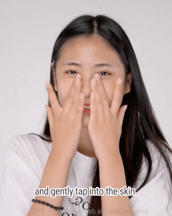 ... rồi dùng đầu ngón tay massage theo hình tròn, vỗ nhẹ để kem ngấm vào da. (Nguồn: Wishtrend)