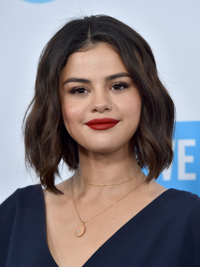 Kiểu tóc bob rẽ ngôi giữa, sóng nhẹ đã giúp Selena Gomez hoàn thiện hình tượng gợi cảm, sang trọng. Màu son đỏ Selena Gomez chọn quả là lý tưởng vì giúp tăng thêm nét sắc sảo, quyến rũ, đồng thời rất hợp với màu tóc nâu trầm mà cô đang áp dụng.