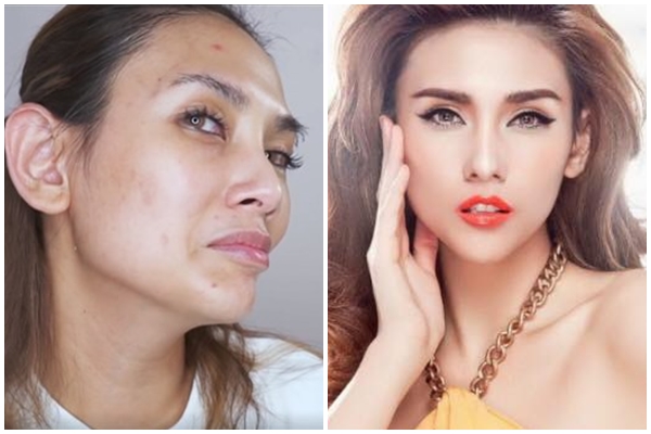 Bức ảnh "để đời" về dung nhan khi không và có make up của Bảo Anh.