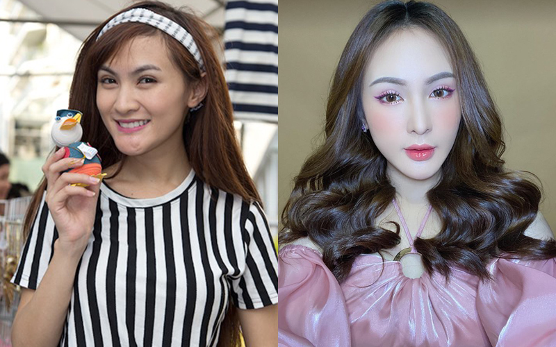 Kelly Nguyễn thời làm cằm hỏng (trái) và hiện tại.
