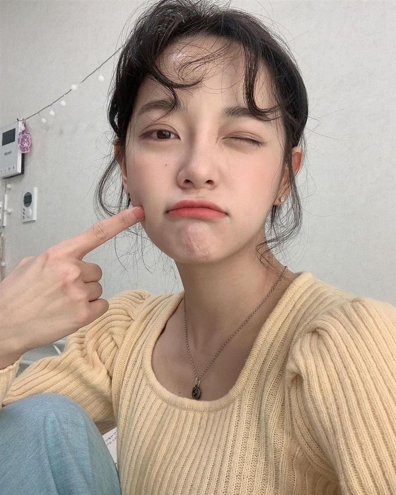 Khi buộc tóc nửa đầu, nhìn Shin Ha Ri xinh xắn nữ tính hơn. Phần tóc mái rủ nhẹ bay bay vương vấn lên gương mặt, một Shin Ha Ri nhí nhảnh đáng yêu bỗng nhiên dịu dàng, nền nã hơn hẳn.