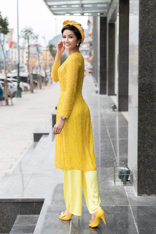 Từng nhiều lần mua đồ giá rẻ, thậm chí chỉ vài chục nghìn như đôi cao gót màu vàng này chẳng hạn. Đôi giày mua từ một cửa hiệu đồ hàng thùng (secondhand) nhưng lại lên đồ sang xịn không thua gì đồ hiệu, nhất là khi đôi giày lại xuyệt tông với bộ áo dài vàng óng của H'Hen Niê.