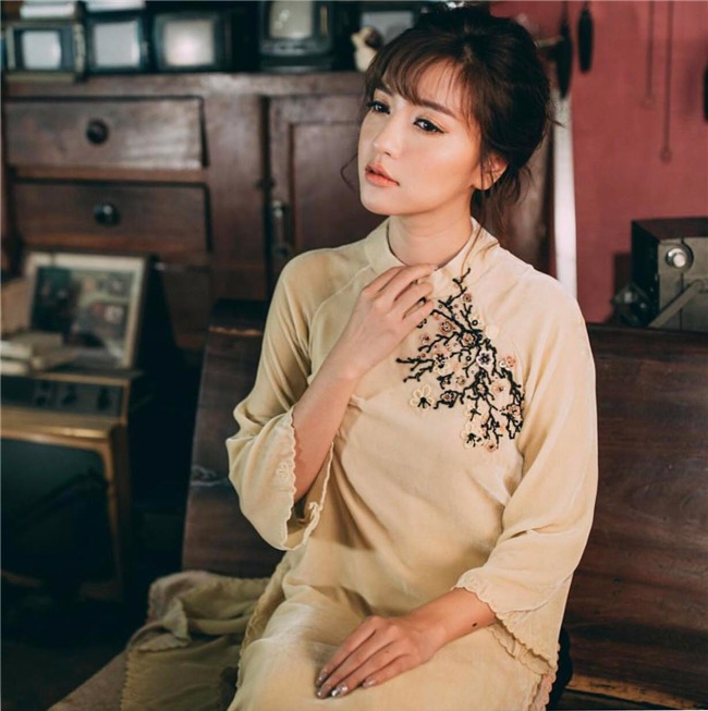 Vẻ nền nã, dịu dàng của người đẹp trong tà áo dài.