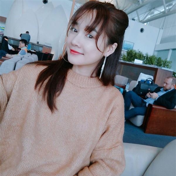 Khác hẳn với kiểu tóc ngôi giữa trước đây, cô nàng trông thật nhẹ nhàng và đáng yêu với tóc mái thưa nhuộm nâu đen.