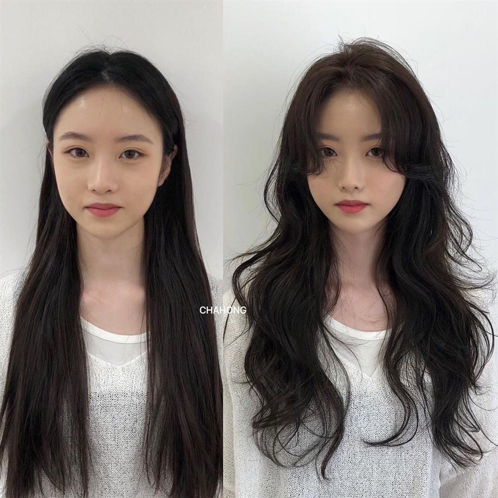 Nhược điểm mặt to tròn, trán cao dô sẽ mềm mại, cân đối hơn nhiều nhờ kiểu tóc mái uốn cong 2 bên đều nhau này.