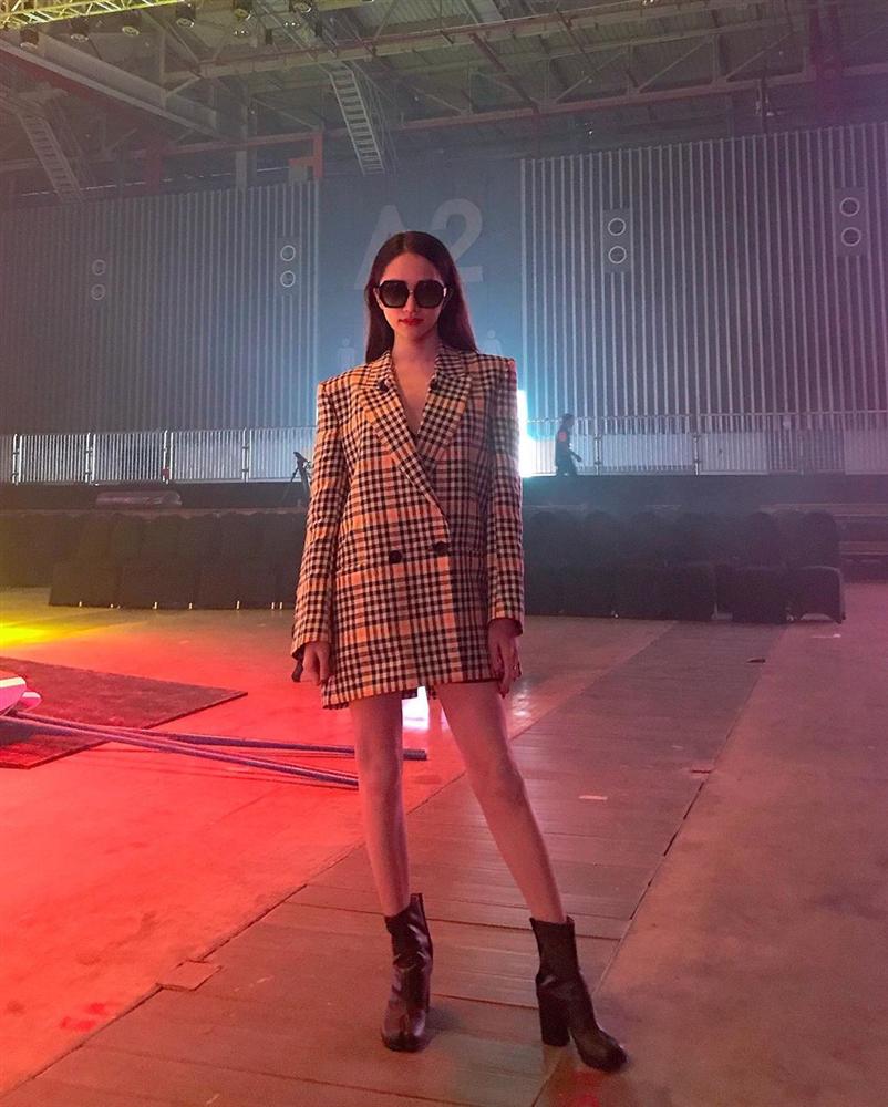 Với kiểu tóc thẳng rẽ ngôi giữa đơn giản, Hương Giang toát lên vẻ ngoài sang chảnh.